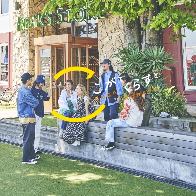 古河の「こ」をカッコとして活用し、その中に一人ひとりが思うまちの魅力を入れ込み、互いに伝え合えるようにデザインしました。「こがでくらすと」の言葉でつながり、皆さんの思いと一緒に育っていくロゴマーク。それぞれの思いに合わせて選べるように、6色のカラーバリエーションも用意。お店やまちのさまざまな場所で、自由に使っていただけるようにしていきます。